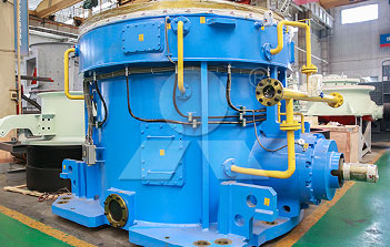 主电机通过减速机带动磨盘转动,同时风从进风口进入磨机,物料经螺旋给料机下料口落在磨盘中央,在离心力的作用下,物料从磨盘中央向边缘均匀移动,经过磨盘上的粉磨辊道区域时,受到磨辊的碾压,大块物料直接被压碎,细粒物料受挤压后形成料床进行粒间粉碎。被粉碎的物料继续向磨盘边缘移动,直到被风环处的强气流带走,而较大的颗粒物料又重新掉落到磨盘上继续粉碎,气流中的物料经过上部的分离器时,在分离器叶片的作用下,粗颗粒重新回到磨盘上粉磨,合格的细粉随气流一起出磨,被系统的集粉器收集,被收集到的粉料即为超细立磨磨出的产品。混入物料的铁块等杂物随物料运动到磨盘边缘时,由于自身重量大而不能被风吹起,跌落至磨机下腔被安装在磨盘底部的刮料板刮入排渣口排出机外。