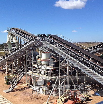 大块石料经料仓由振动给料机均匀地送进颚式破碎机进行粗碎,粗碎后的石料由胶带输送机送到反击式破碎机进行进一步破碎;细碎后的石料由胶带输送机送进振动筛进行筛分,筛分出几种不同规格的石子,满足粒度要求的石子由成品胶带输送机送往成品料堆;不满足粒度要求的石子由胶带输送机返料送到反击式破碎机进行再次破碎,形成闭路多次循环。