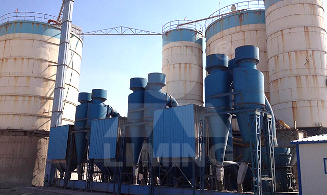 符合细度的粉子随气流经管道进入收尘器内进行分离收集,收集的成品粉子经出料口由输送装置送至成品料仓,再统一用装粉罐车或者自动打包机进行包装。