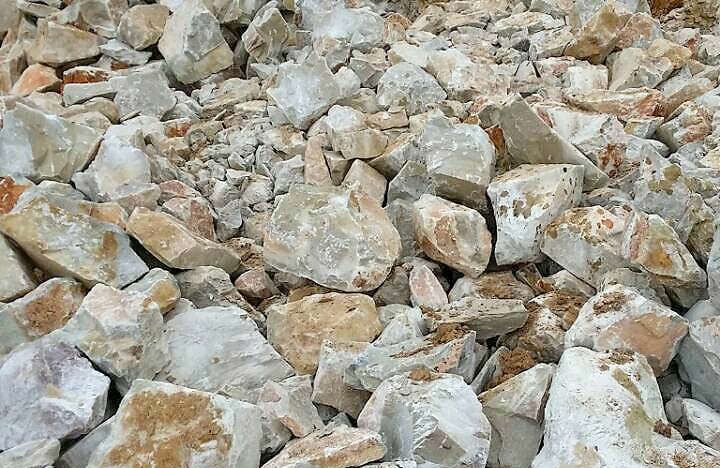 大块叶腊石经破碎机破碎到能进入磨粉机的入料细度(15mm-50mm)。