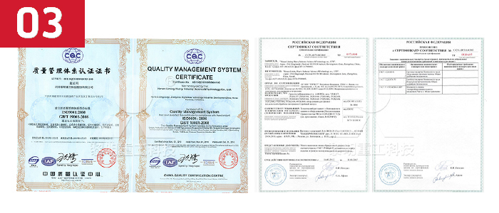公司产品在同行业中率先通过ISO9001、CE和GOST国际质量体系认证。