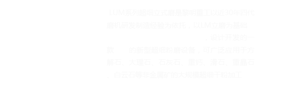 LUM系列超细立式磨主要由电动机、减速机、磨辊装置、磨盘装置、加压装置、选粉机、机体和油站等组成。它的横空出世使得一次性完成超细粉的粉磨、分级和输送作业的设想现实化,其工艺参数、机械性能和成品粉品质等技术指标均与台湾水平相当。